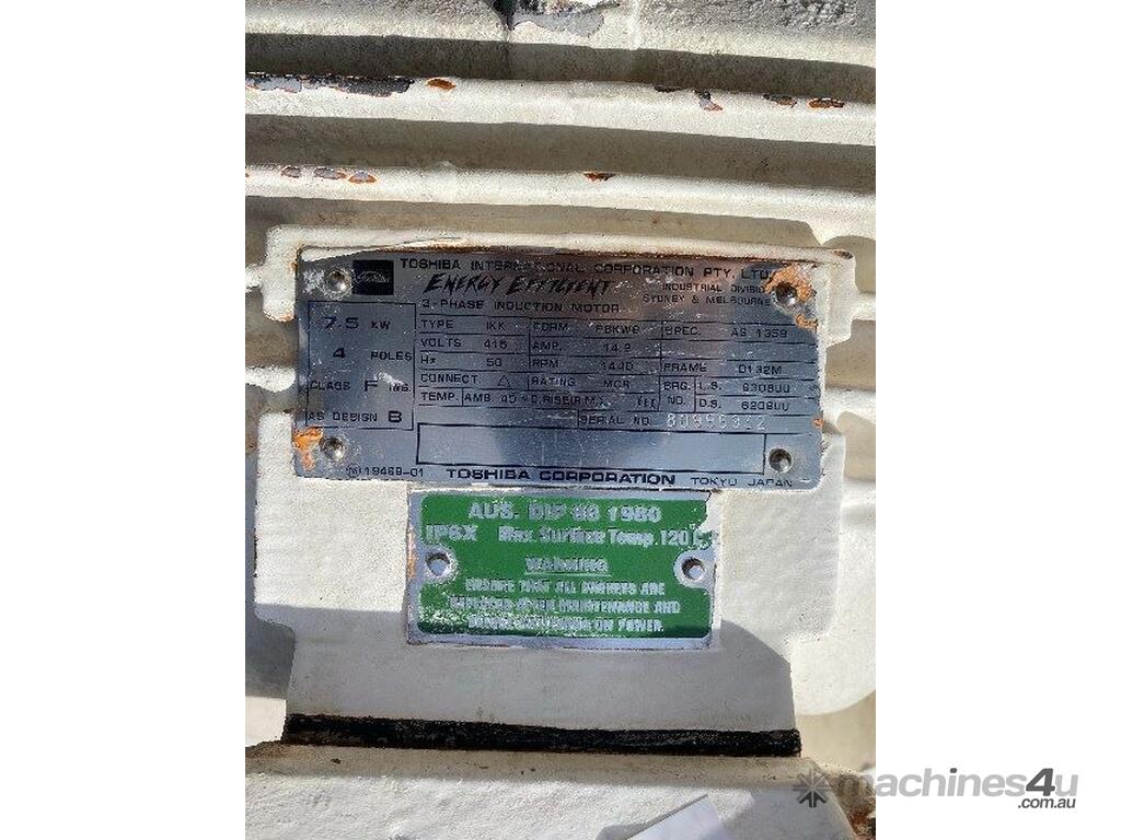 Powered by 7.5kw 415v 4 pole Toshiba motor rated IP6X AUS. DIP88 .