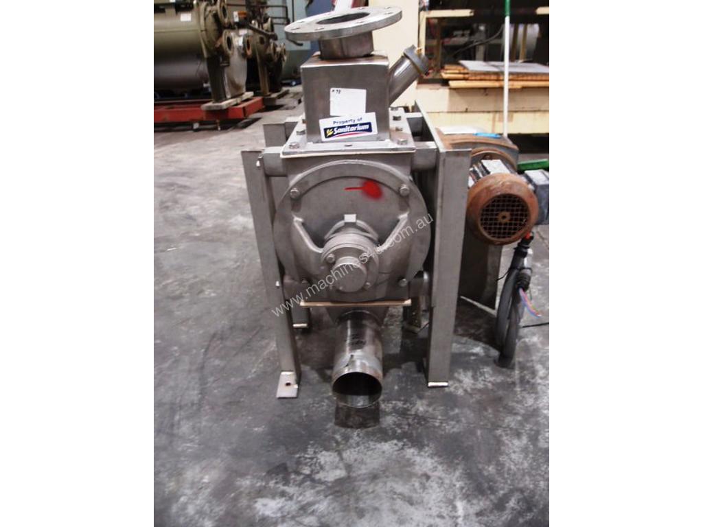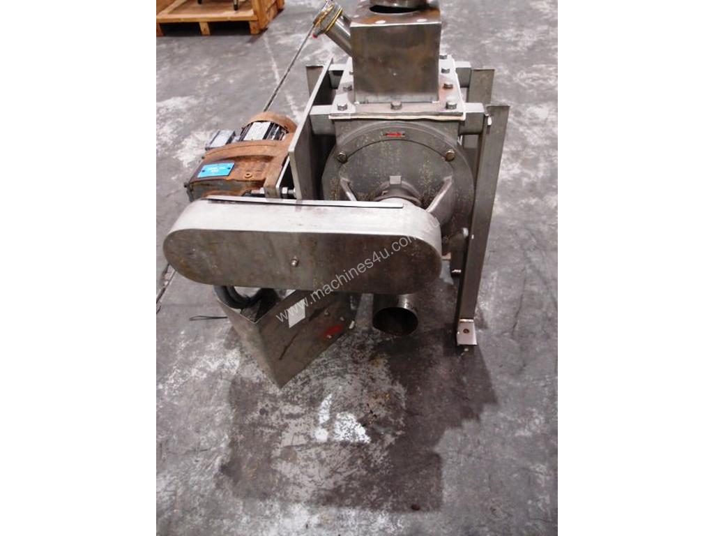 Unit is a stainless steel food grade rotary valve fitted with a 100mm dia blowpipe attachment.