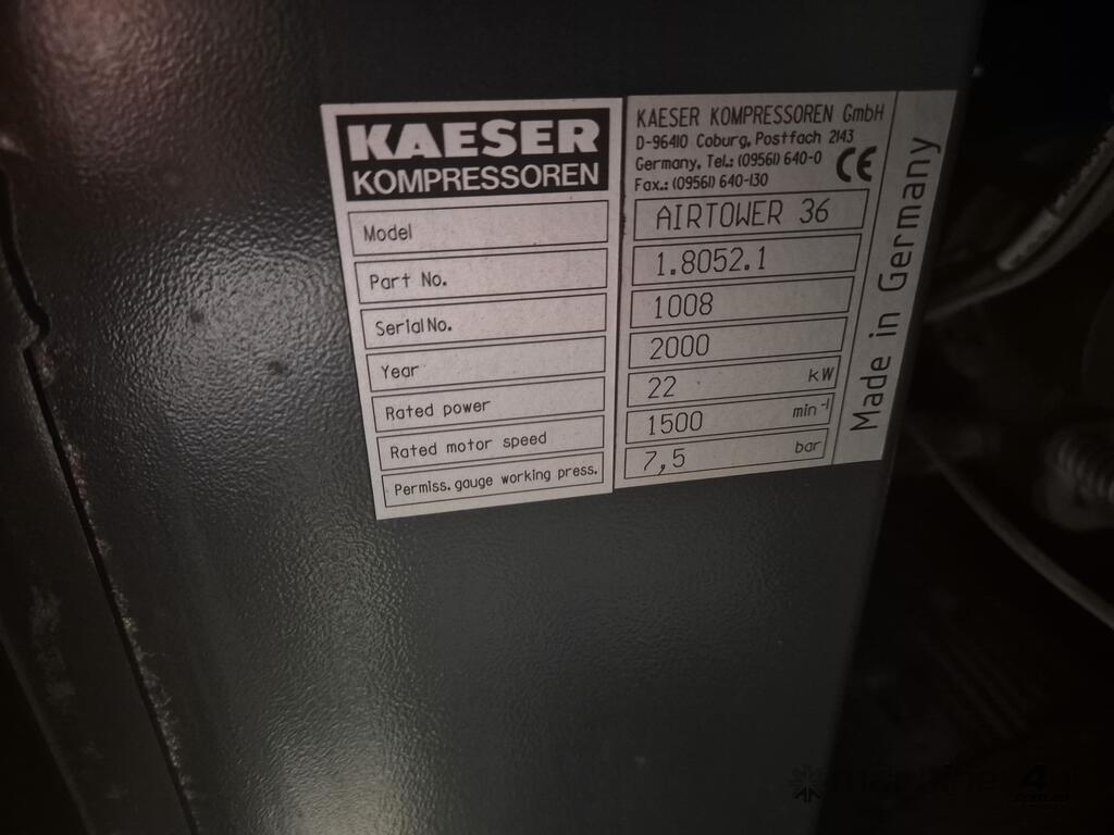 Kaeser Airtower 36 (22KW) rotary screw air compressor with air dryer which supplies 127 CFM 7.5BAR pressure. Compressor is made in Germany it comes fully serviced and with a 3 Month ACS warranty (condition apply). Also comes with kaser air dryer mounted underneath.
