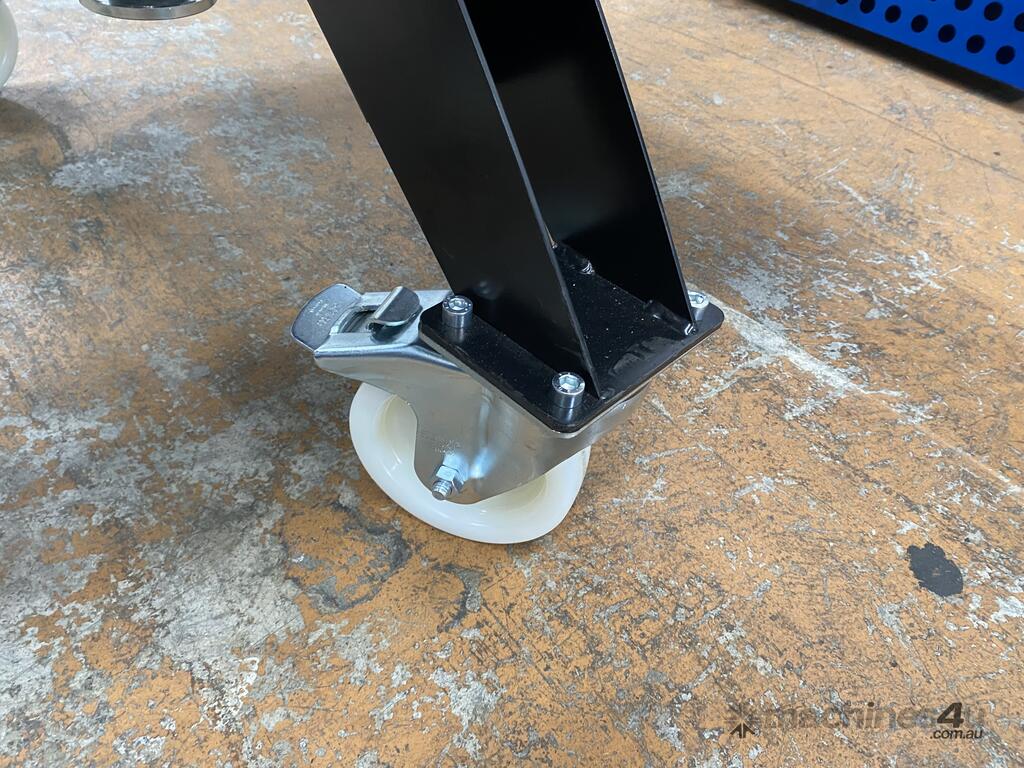 The basic frame “portable” comes with sturdy castors with locking brakes and provides the same load bearing capacity as the static version.