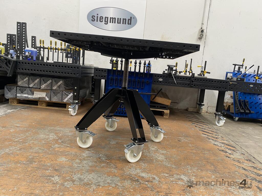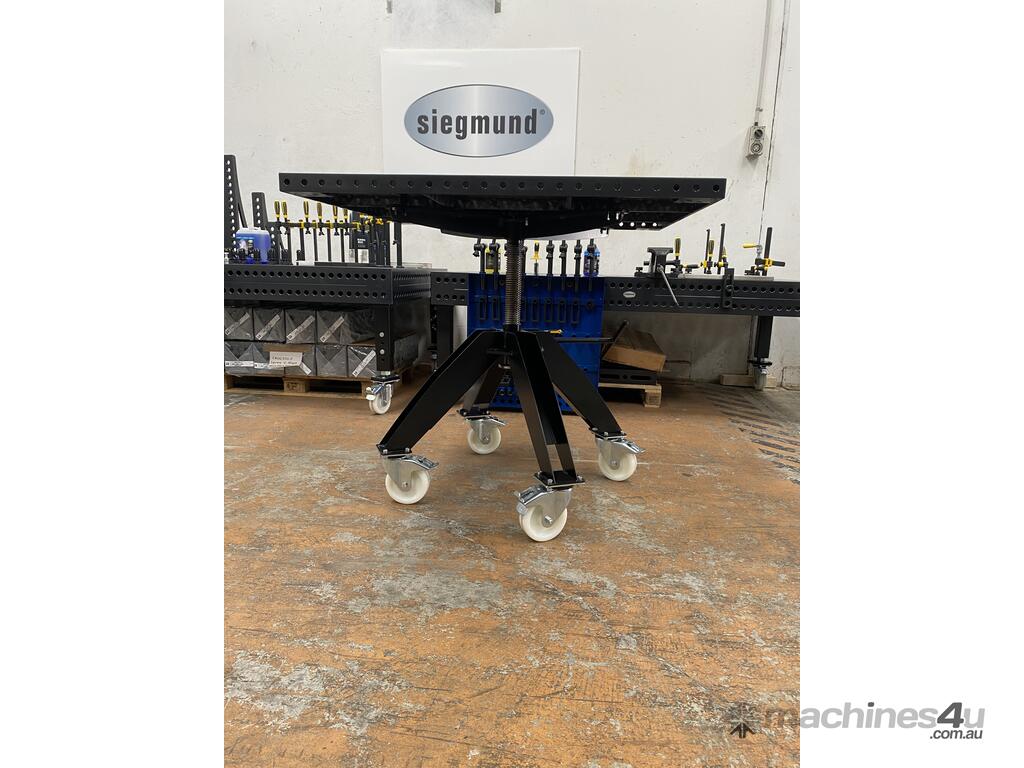 The Siegmund height adjustable rotating table provides an ergonomic and space saving solution. The work top height is infinitely variable and can be fixed in position by a side locking lever.