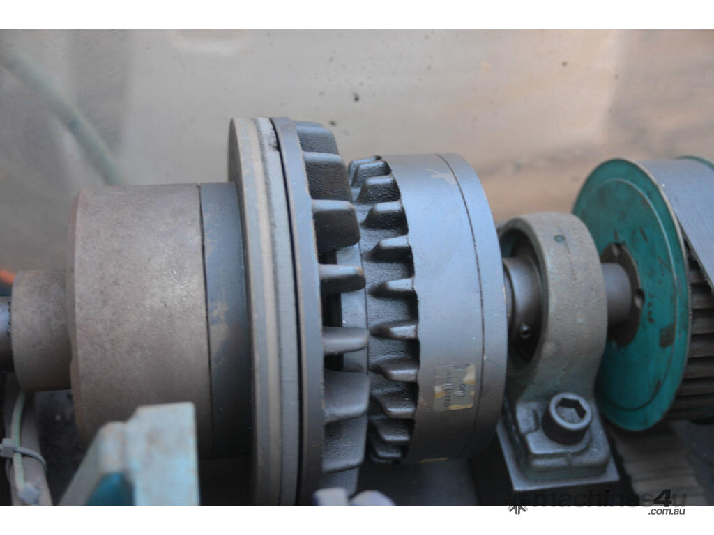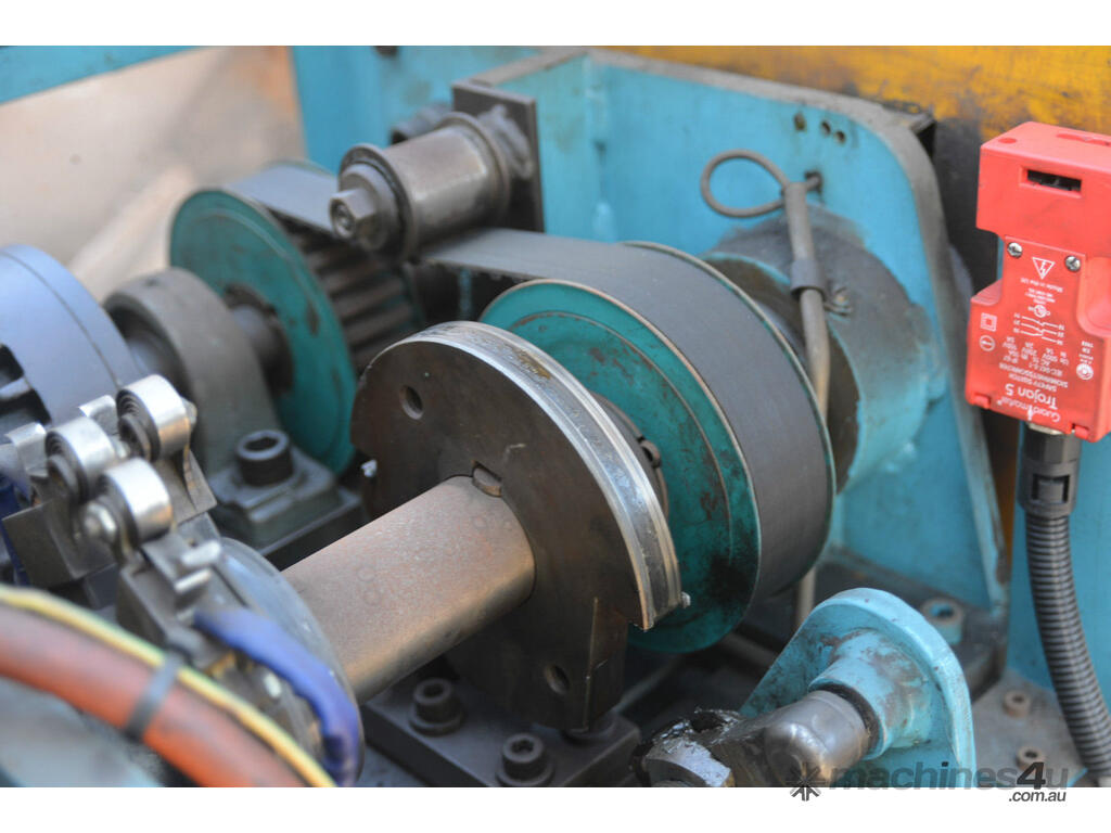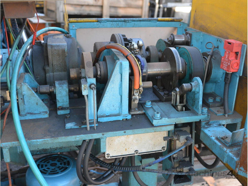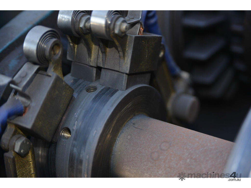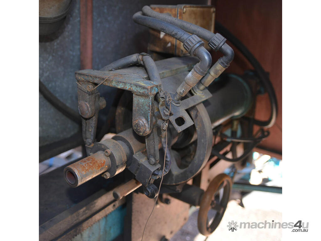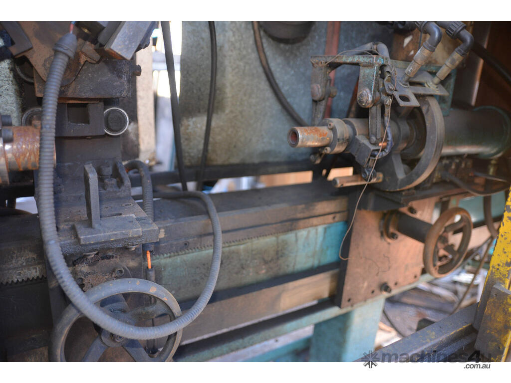 Rotational lathe welding machine cw high current rotating earth system for both sides of work, hydraulic power pack DC variable speed drive system with clutch star. This system was designed to weld the part pictured but its versatile with both the hydraulic tail stock and the welding position able to slide up and down the bed.