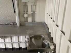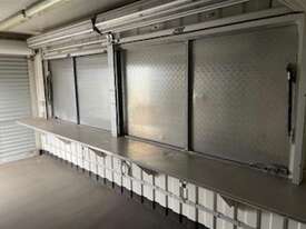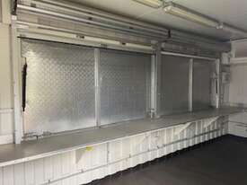 Fitted with 2 x roller doors, 1 x PA door, a/c, full length fixed work top, lighting, sink with tap, non slip flooring, awning latches and struts fitted.