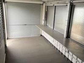 Separate clear slat security rollers fitted to service windows to provide ticket counter/ cashier set up.
