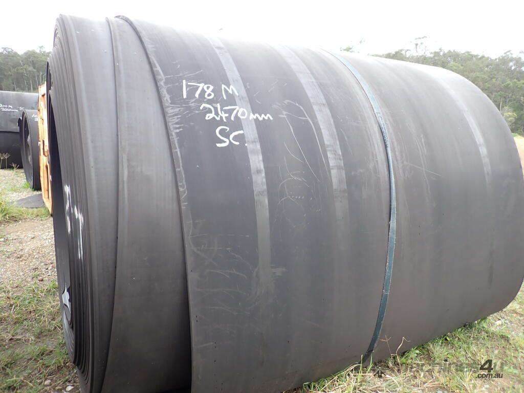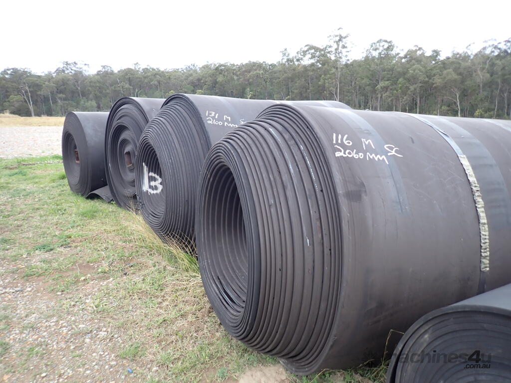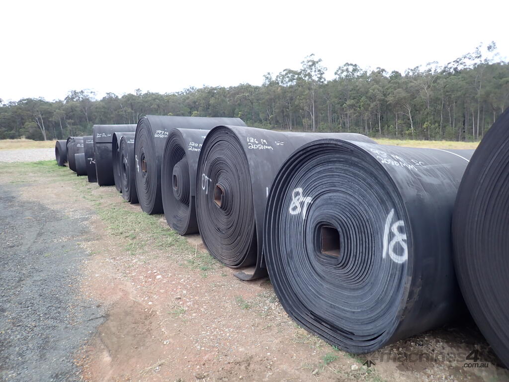 Rubber conveyor belting used, steel cord rubber, around 20mm thick, in rolls 1760mm to 2470mm wide, selling by the roll, rolls ranging from 37m to 203m long, priced from $7 per lineal meter inc gst, good for shed floors and driveways or similar uses such as under firewood stacks, etc., about 5000LM available.