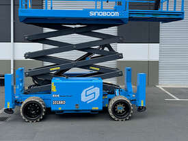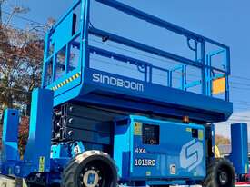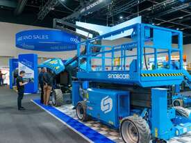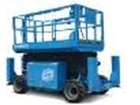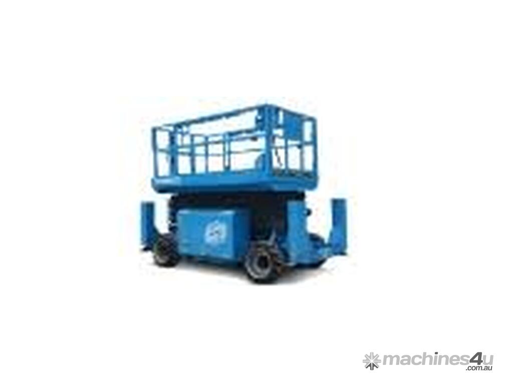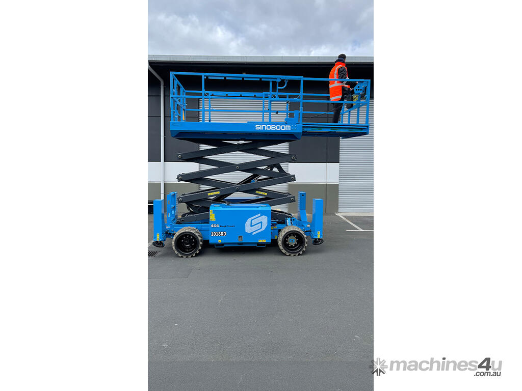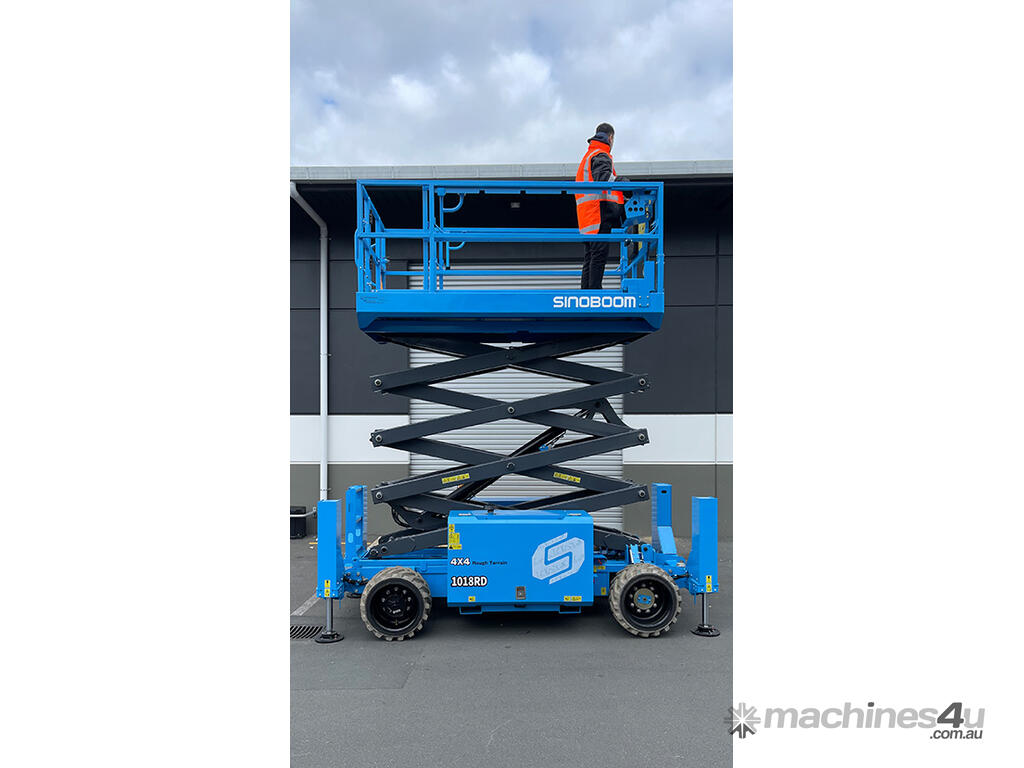 Self-levelling scissor lift that can operate on slopes and uneven surfaces