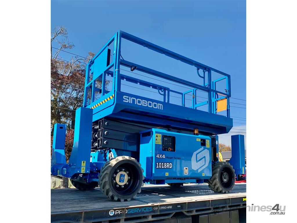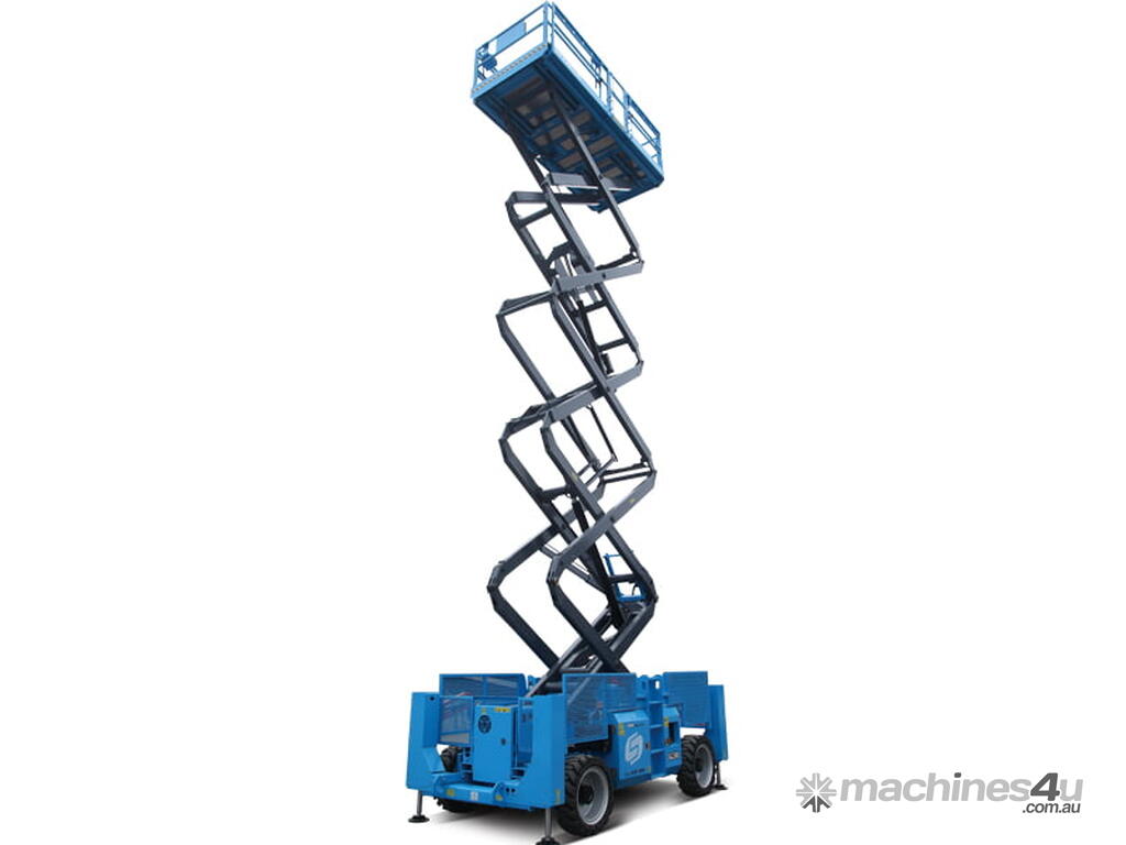 Self-levelling scissor lift that can operate on slopes and uneven surfaces