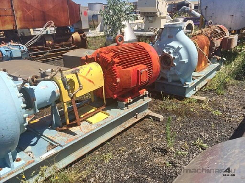 Stainless Steel pumps, KSB 200mm inlet x 200mm outlet x500 impeller diaModel KRPF 200-500.(recessed Impeller)Capacity 60L/sec 30m Hd.Drive 90kw, 980rpm, 415v Motors.Last used in PVC plant .Could be used to pump Semi solids ,Abattoir,fish,vegetables ect. 2 Pump setups available.