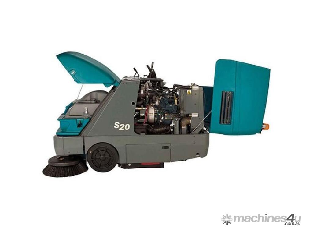 S20 ride-on sweeper from Tennant provides high performance sweeping with effective dust collection of indoor and outdoor industrial applications. Industrial cleaning power, compact design allows sweeping of restrictive areas whilst having the ability to produce high productivity cleaning, Tennant S20 reduces the costs of cleaning while achieving maximum sweeping results every time.