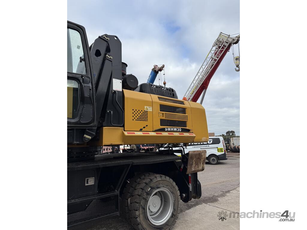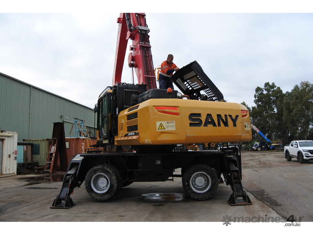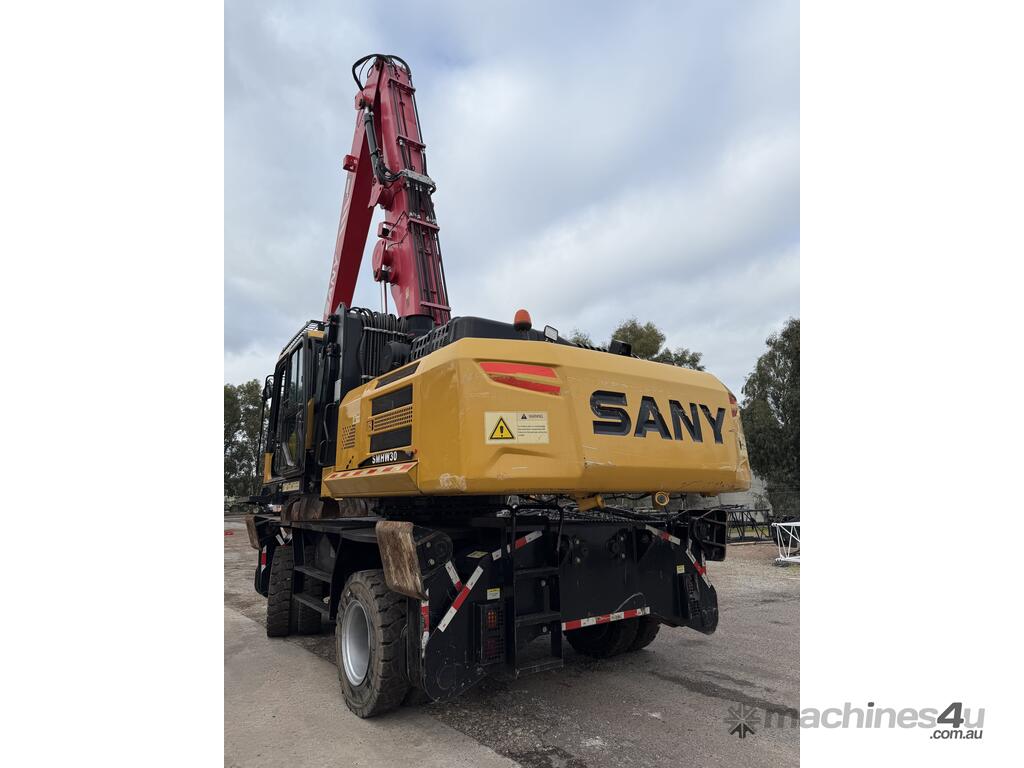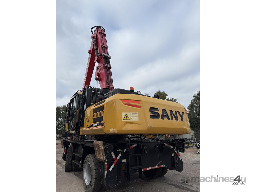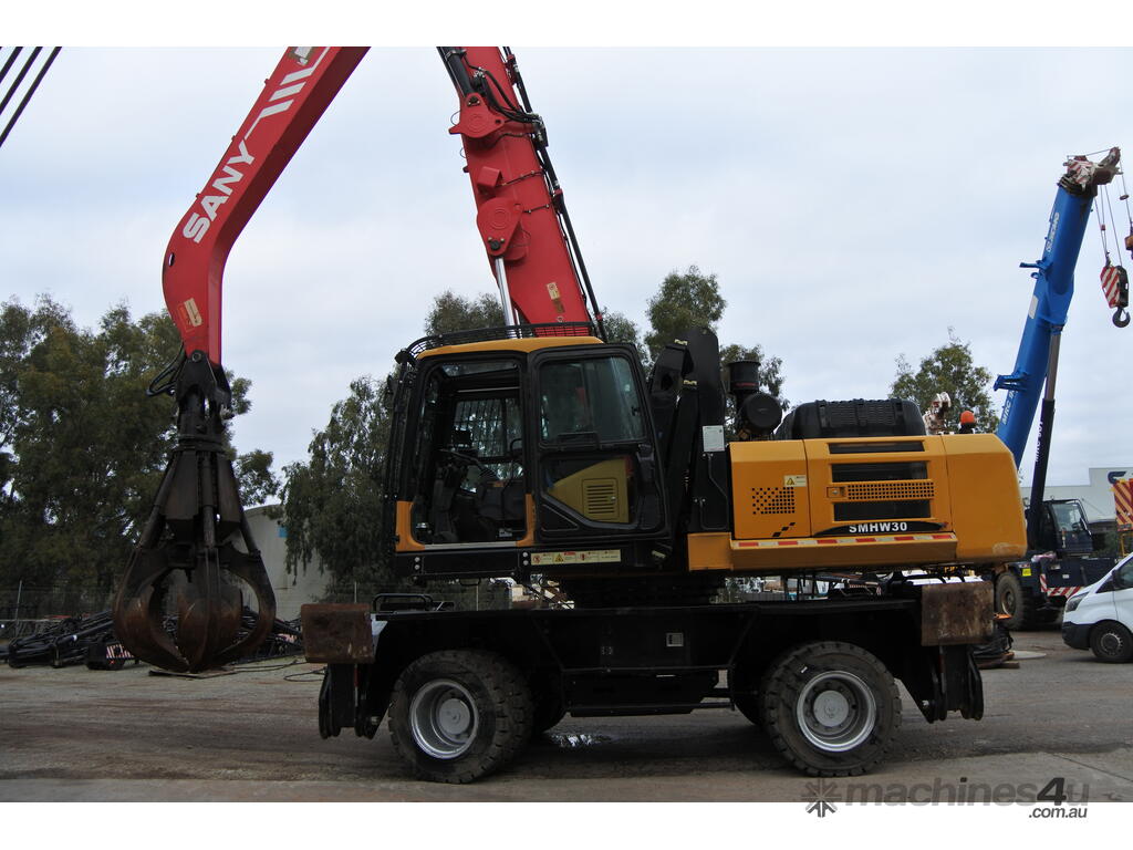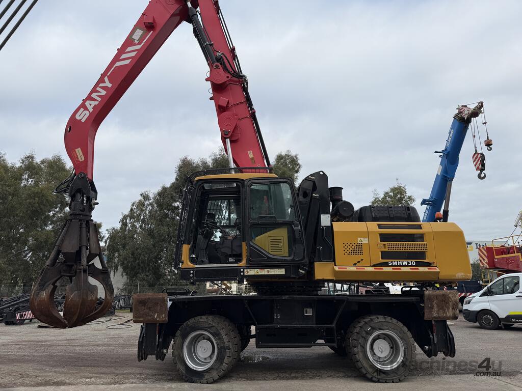 The SANY SMHW30 is a purpose-built 30-tonne wheeled material handler, ideal for scrap yards, ports, and recycling applications. This unit (JN: 15052) delivers powerful performance, enhanced stability, and excellent visibility for operators working in high-cycle, heavy-duty environments.