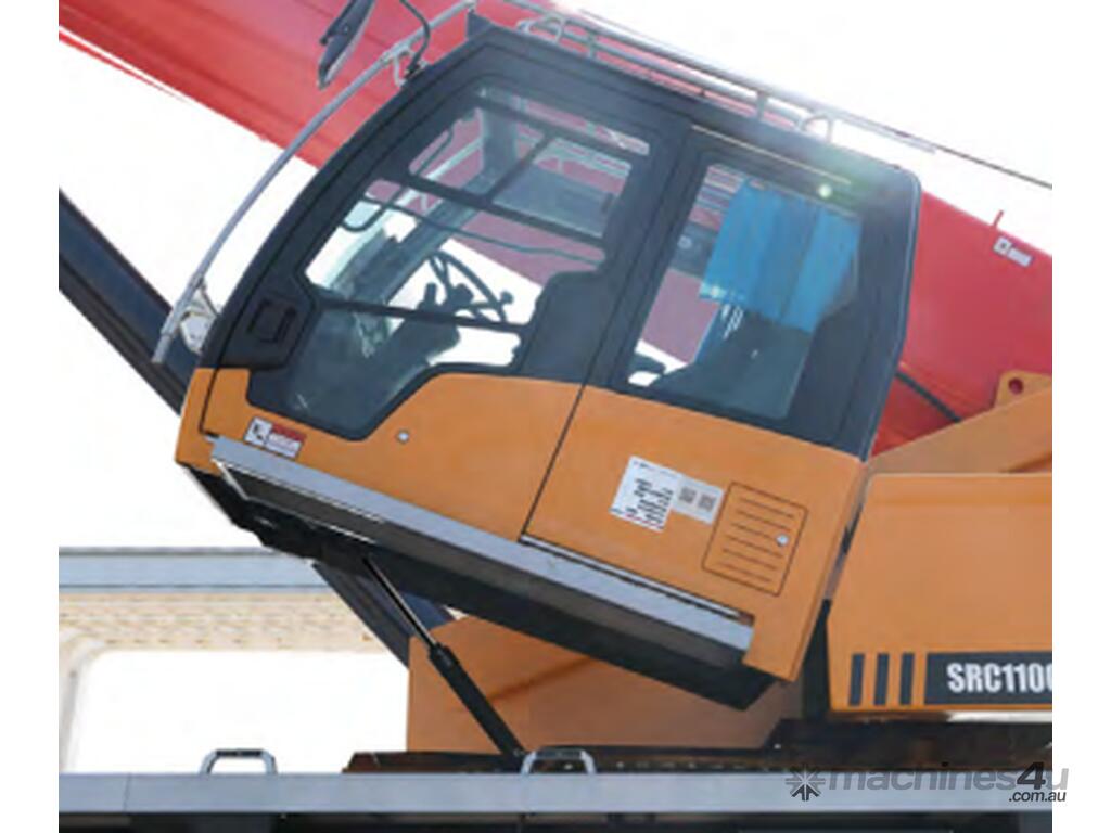 This Sany SRC1100T rough terrain crane is built with strong u-shaped boom structure to distribute weight evenly and increase stability. This rough terrain crane also comes with user-friendly remote controlled counterweight and jib mounting. The operator cabin has been redesigned to ensure safety and comfortable operation. It offers 360° full vision with wider interior, adjustable seat and smart control system.