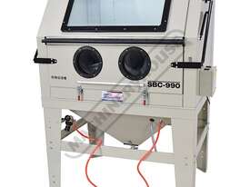 The SBC-990 industrial sandblasting cabinet features a wide and high door opening from the front with gas strut supports holding the door up when lifted all the way and giving you ultimate access to the cabinet. This blaster has a massive cabinet size of 1175mm wide x 885mm deep x 625-845mm high that will suit any industrial workshop that needs to blast clean all types of metals.