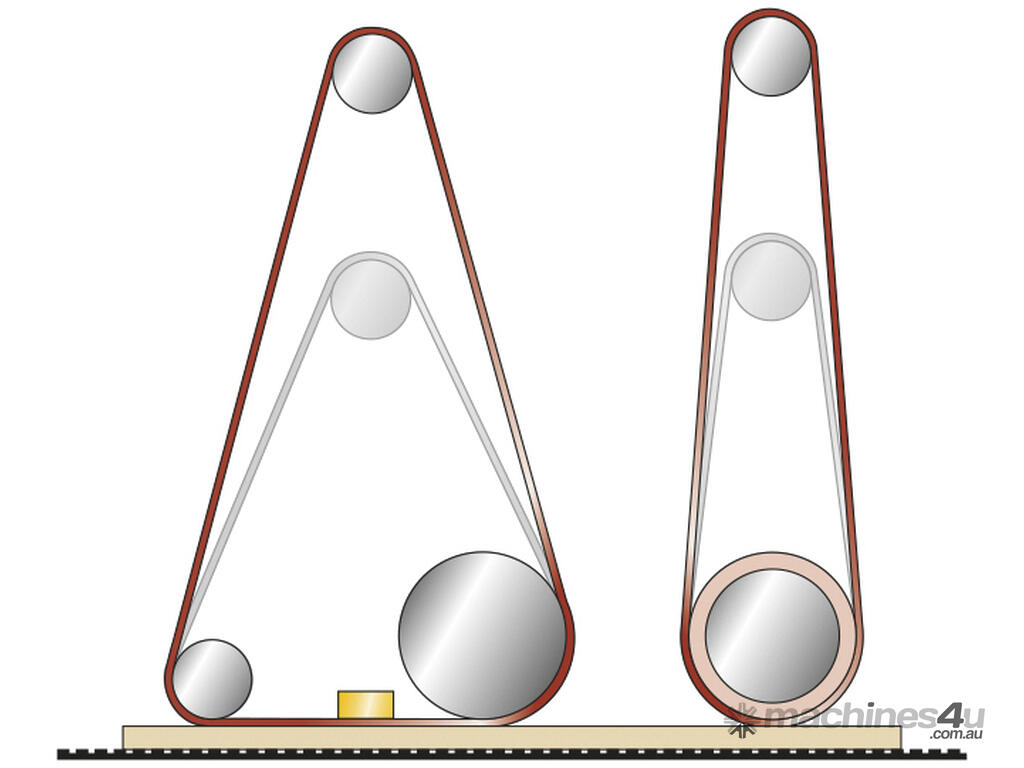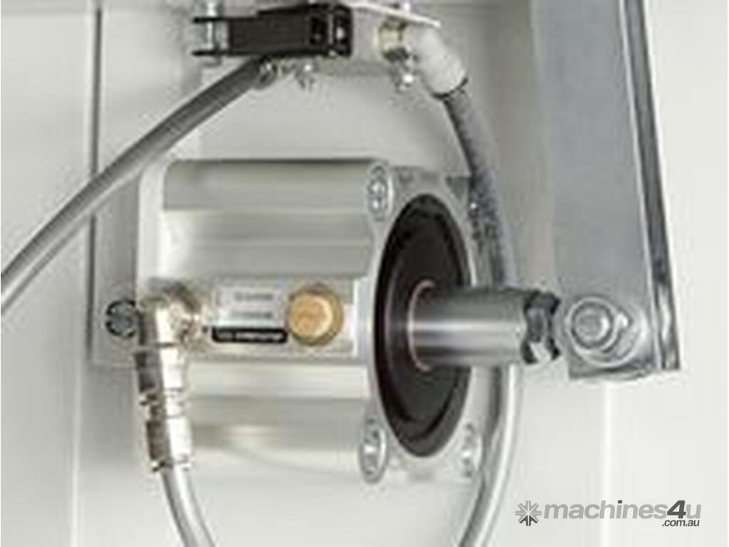 An electro-pneumatic system keeps the feed belt on track, perfectly centred and tensioned at all times. The system is automatic and no operator intervention is required.