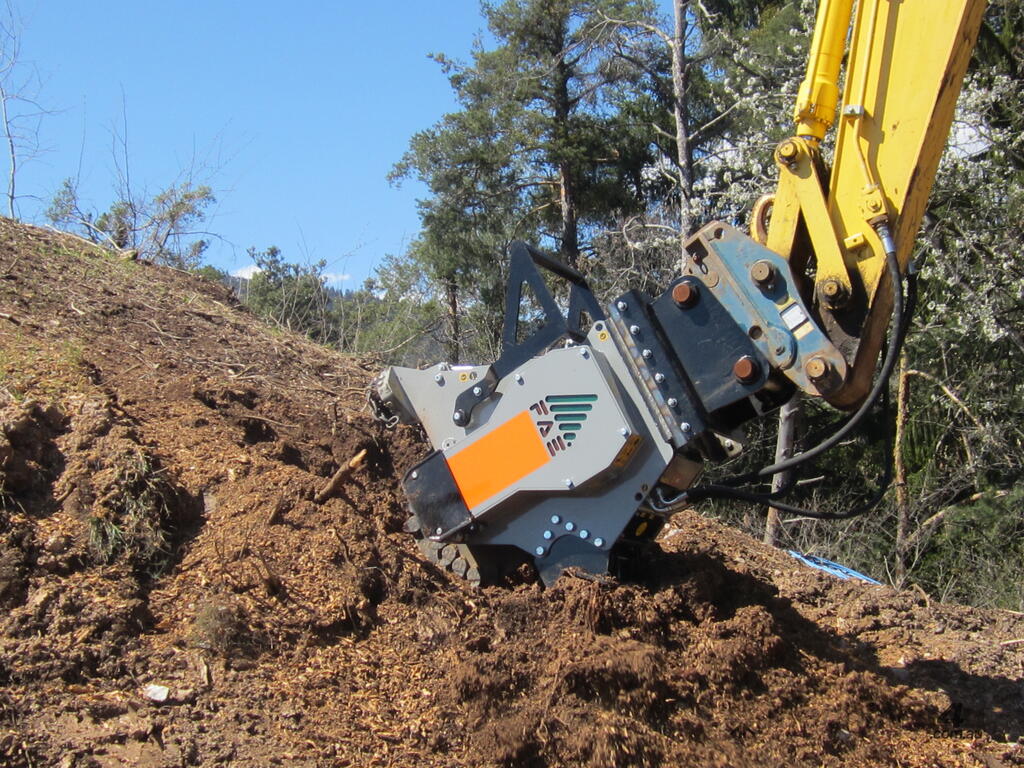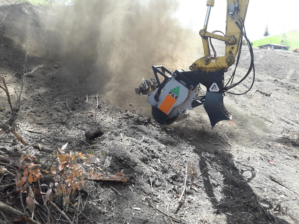 Thanks to the tough, reliable and easy to use special wheel, the stumps are simply swept away. The hydraulic adjustment of the front hood provides safer working conditions. The front fixed thumb is designed to move the cut material.