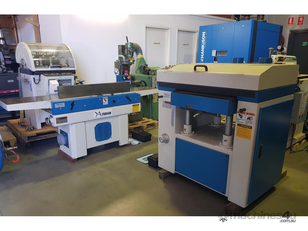 5) YUAN AN 916-J 405mm 5hp 415v SPIRAL CUTTER INDUSTRIAL SURFACE PLANER/JOINTER 2.4m TABLES, MADE IN TAIWAN Year 2021 CURRENT SERIES, FAST INFEED TABLE ADJUSTMENT, TILTING FENCE. VERY HEAVY DUTY, TOP QUALITY. OVERHEAD CONTROL PANEL. VERY LITTLE USE, DECEASED ESTATE, SHOWROOM CONDITION. SAVE $ 000's