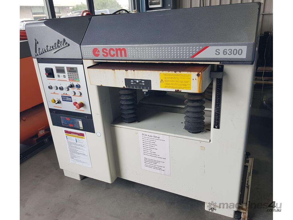 11). SCM L'invincibile S630F 630mm x 300mm PLANER/THICKNESSER 630mm Width x 300mm Depth, 11kw 15hp Main Motor 415v, Year 2007 STATE OF THE ART MACHINE, ALL THE EXTRAS - SEGMENTED INFEED ROLLER, 2 x POWERED FEED TABLE ROLLERS, ELECTRONIC INFINITELY VARIABLE FEED SPEED, ELECTRONIC RISE & FALL, OPTIONAL AUTOMATIC SETTINGS, DIGITAL READOUTS etc. MADE IN ITALY, VERY HEAVY-DUTY MODEL, WEIGHT 980kg.