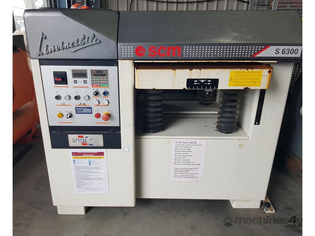 9). SCM L'invincibile S630F 630mm x 300mm PLANER/THICKNESSER 630mm Width x 300mm Depth, 11kw 15hp Main Motor 415v, Year 2007 STATE OF THE ART MACHINE, ALL THE EXTRAS - SEGMENTED INFEED ROLLER, 2 x POWERED FEED TABLE ROLLERS, ELECTRONIC INFINITELY VARIABLE FEED SPEED, ELECTRONIC RISE & FALL, OPTIONAL AUTOMATIC SETTINGS, DIGITAL READOUTS etc. MADE IN ITALY, VERY HEAVY-DUTY MODEL, WEIGHT 980kg.