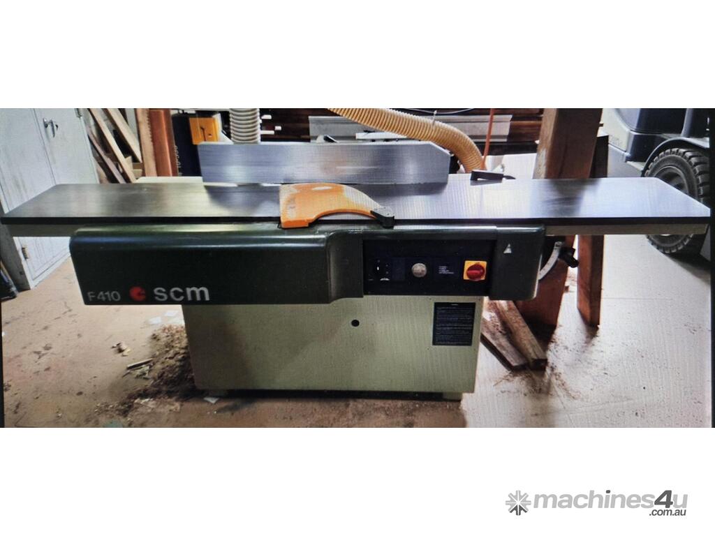 1). SCM F410 410mm 4kw 5.5hp 415v PLANER/JOINTER 4-BLADE CUTTERBLOCK, 2.65m LENGTH TABLES (1.45m INFEED TABLE), TILTING HEAVY DUTY FENCE, MADE IN ITALY, HEAVY DUTY, TOOLS etc. 1 OWNER, WELL ABOVE AVERAGE CONDITION