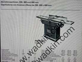 5). WADKIN BFT 230mm 9inch INDUSTRIAL SURFACE PLANER/JOINTER 415v 1525mm TABLES, FULL CAST IRON TABLES. EX- TAFE. VERY GOOD ORIGINAL CONDITION