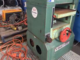 7). DURDEN T360 INDUSTRIAL PLANER/THICKNESSER 14inch Width 4kw 5.5hp 415v EX-TAFE COLLEGE, 2 x FEED SPEEDS, 2 x INBUILT TABLE GRAVITY-FEED ROLLERS, FULL CAST IRON CONSTRUCTION, CENTRE COLUMN FEED TABLE SUPPORT, HEAVY DUTY MADE IN AUSTRALIA, MANUAL RISE & FALL