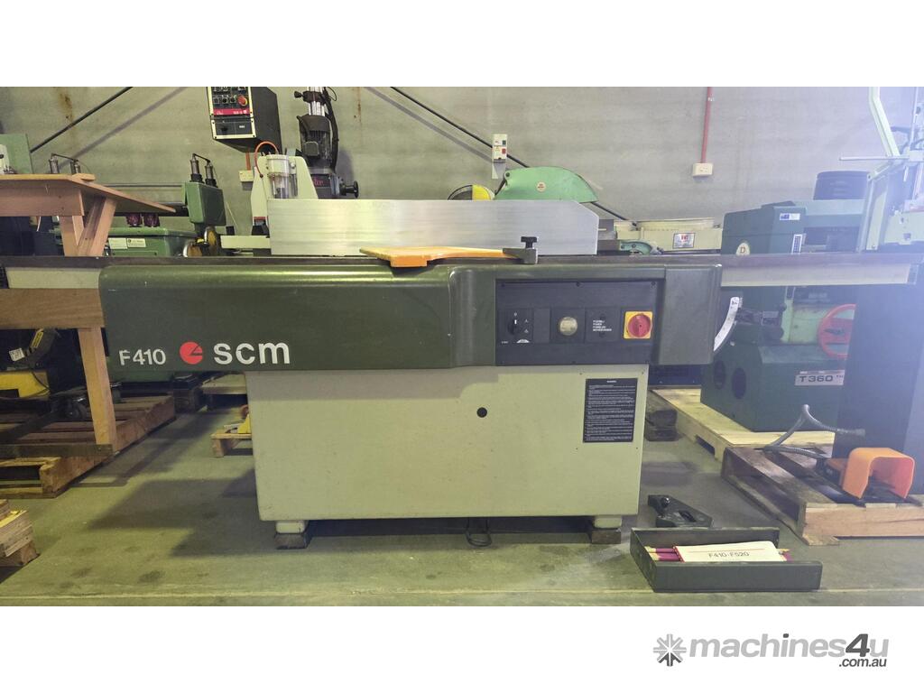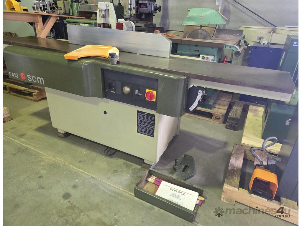1). SCM F410 410mm 4kw 5.5hp 415v PLANER/JOINTER 4-BLADE CUTTERBLOCK, LONG TABLES 2.61m, TILTING HEAVY DUTY FENCE, MADE IN ITALY, HEAVY DUTY 711kgs, BLADE SETTER etc. 1 OWNER, WELL ABOVE AVERAGE CONDITION