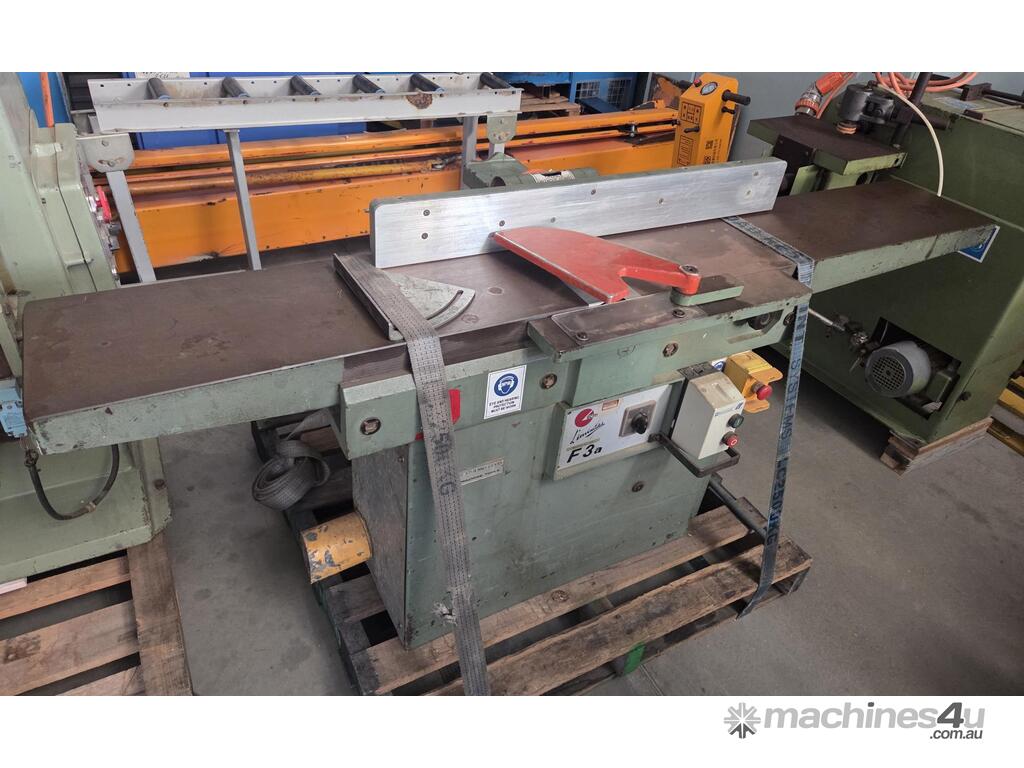 3). SCM F3A 300mm 2.2kw 3hp 415v INDUSTRIAL PLANER/JOINTER 3-BLADE CUTTERBLOCK, 2.1m LONG TABLES, MADE IN ITALY, FULL CAST IRON CONSTRUCTION, EX-TAFE COLLEGE, VERY GOOD ORIGINAL CONDITION