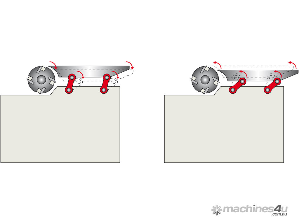 Simultaneous raising of the work tables: a guarantee of perfect planarity. The system allows the changeover from planer to thicknesser with a single movement ensuring working rapidity and precision.