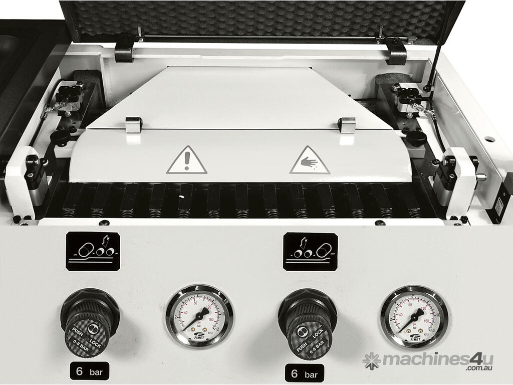 The best finish and effectiveness of the feeding of any material and in any working condition thanks to the pneumatic adjustment. The unique ability to differentially set the pressure on the infeed and outfeed rollers, allows to change at any time the pressure exerted on the work piece.
