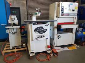 VOORWOOD L110 HOT FOIL EDGER/SHAPER/SANDER (USA) THROUGH-FEED LAMINATOR, TILT, VARIABLE FEED SPEED, MADE IN ATLANTA USA, VERY GOOD CONDITION. Including Box of ROLLS of FOIL