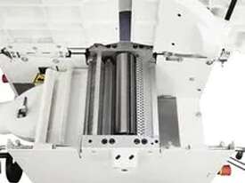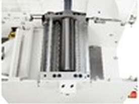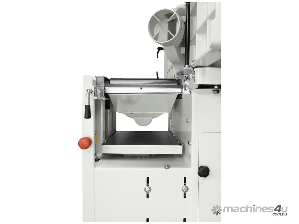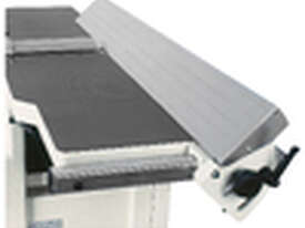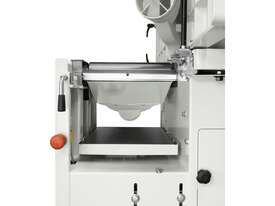The planer unit in the standard version has a 72 mm diameter cutter block with 3 knives. For an impeccable result, the pressure of the thicknesser feed rollers can be adjusted according to the type of wood machined. The thicknesser infeed roller has helical toothing to guarantee strong, constant work piece feed. In contrast, the sandblasted steel outfeed roller maintains the perfect post-machining finish.