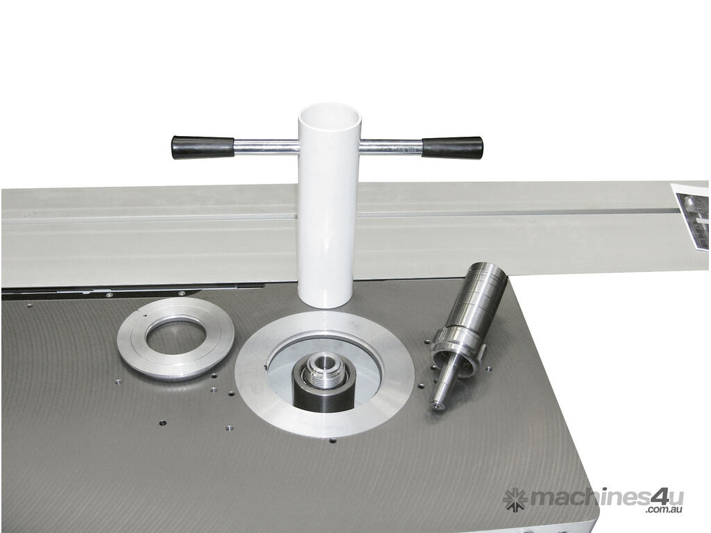 The 270 mm wide sliding table ensures perfect support for any type of material while the 90° inwards opening planer worktables make working to the thicknesser easier and more comfortable. Make sure to take advantage of its ability to run router cutters on the spindle for your projects!