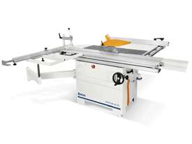 An aluminium sliding table right next to the main blade, a scoring saw fitted standard, large ripping capacities and upgraded rip fence and cross-cut fences. This machine takes up little workshop space, but still handles any panel or solid timber sizing you need.
