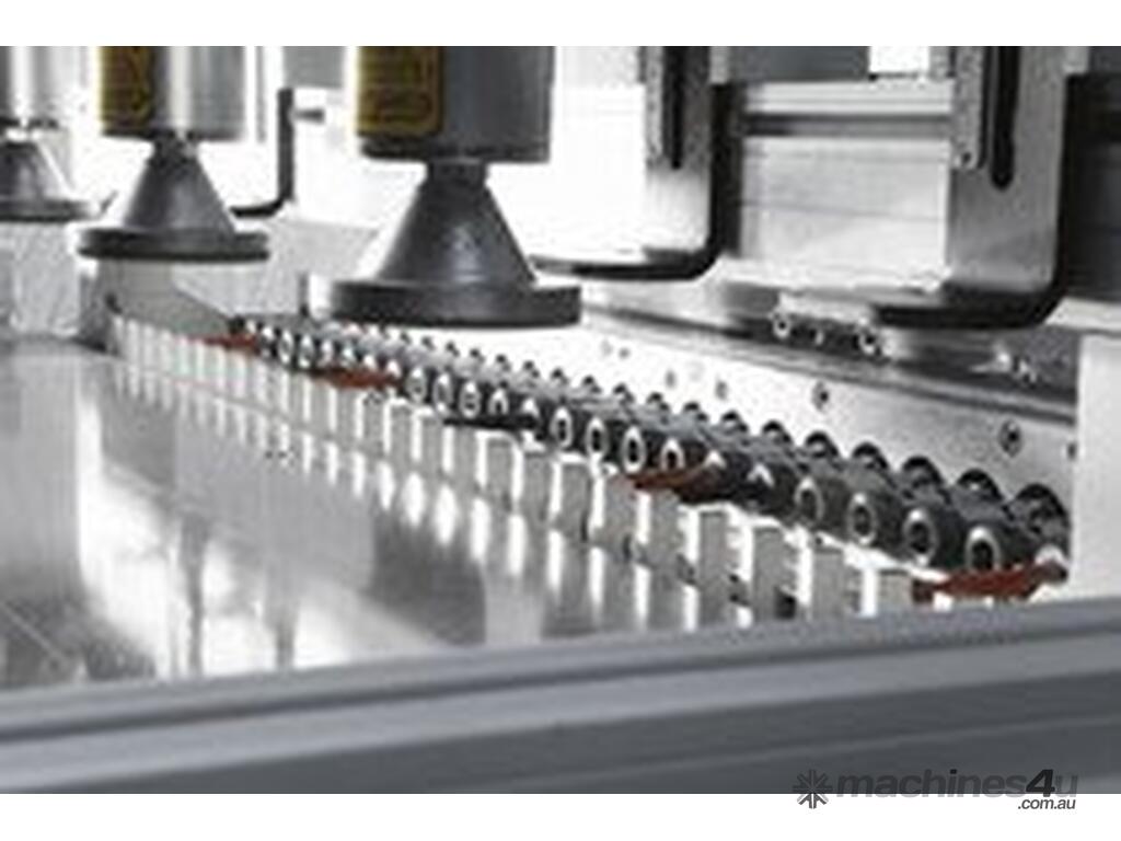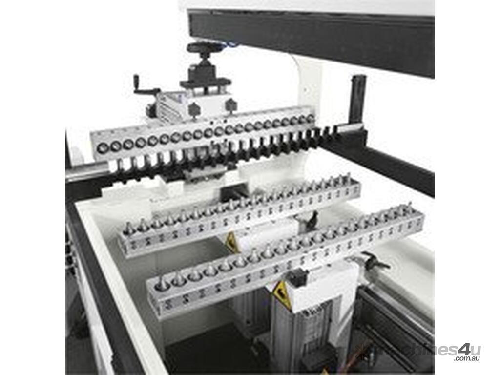 This is a semi-automatic easy to use multi-boring machine with TWO rotating vertical heads. These heads rotate from 0-90° in addition to ONE horizontal head with 21 spindles for quick attachment. This machine is capable of carrying out all of your drilling and boring needs with its sturdy solid steel structure. With quick attachments included, this machine will speed up your setup and running your applications, making you more productive and more money!