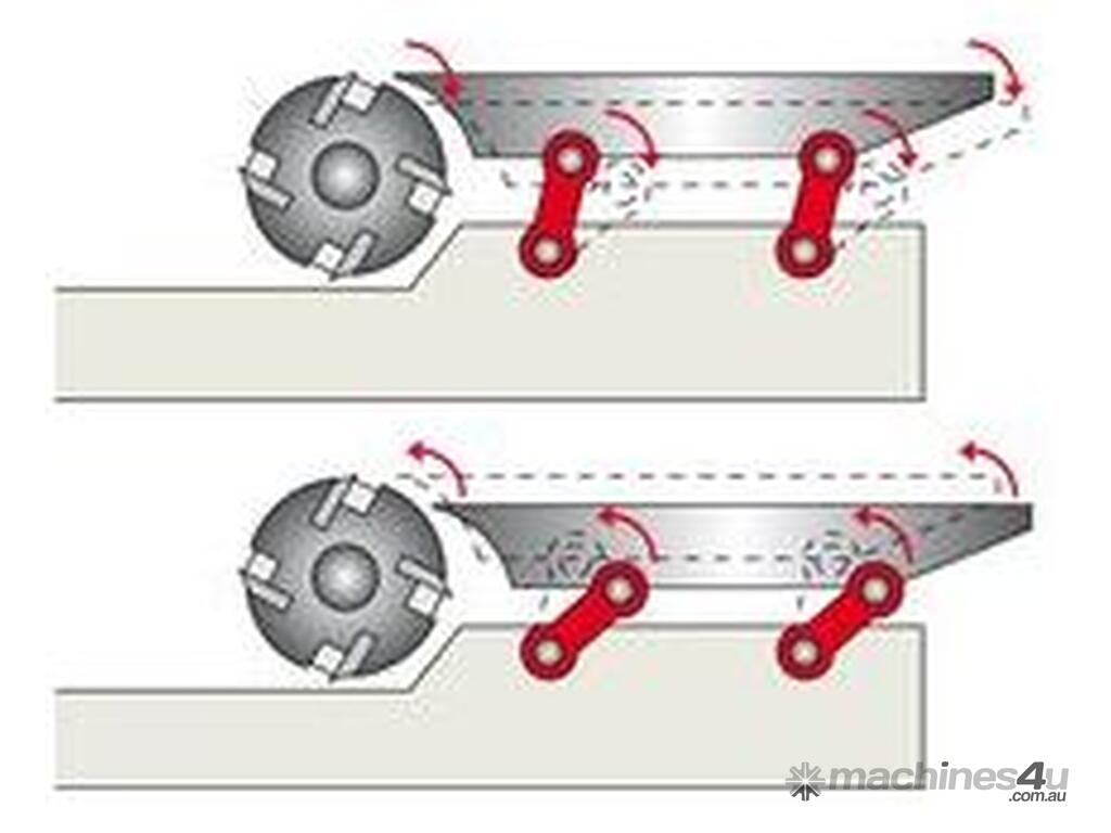 Perfect planarity thanks to the simultaneous raising of the work tables. The system allows the changeover from planer to thicknesser with a single movement ensuring working rapidity and precision.