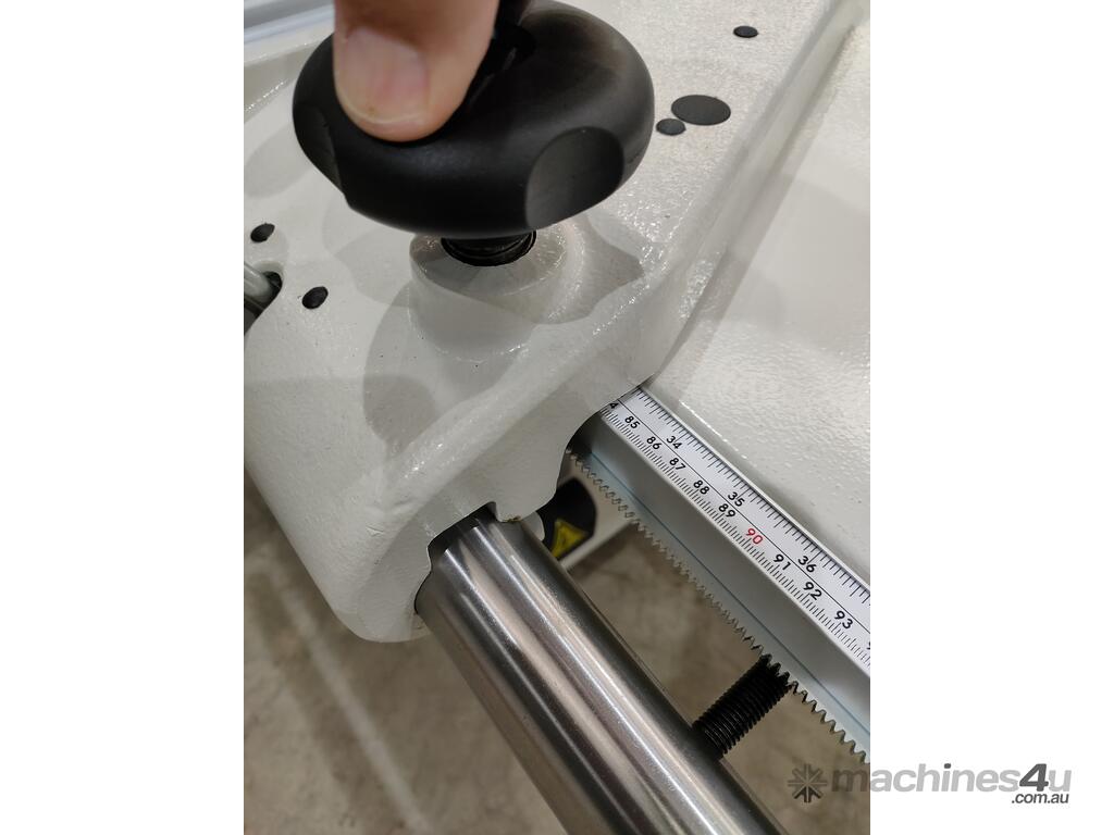 The SI300 Nova saw blade tilts to 45 degrees, is fitted with an overhead guard, and uses an independent motor to run the scoring saw.
