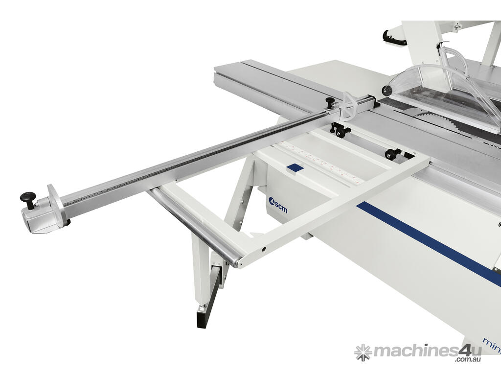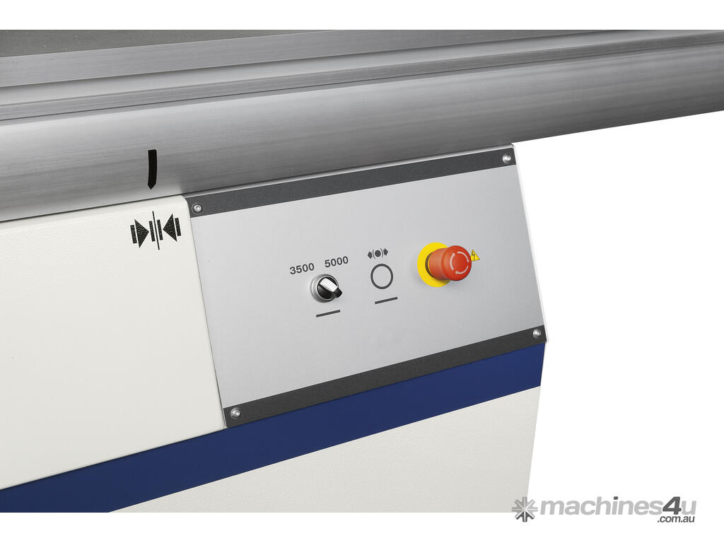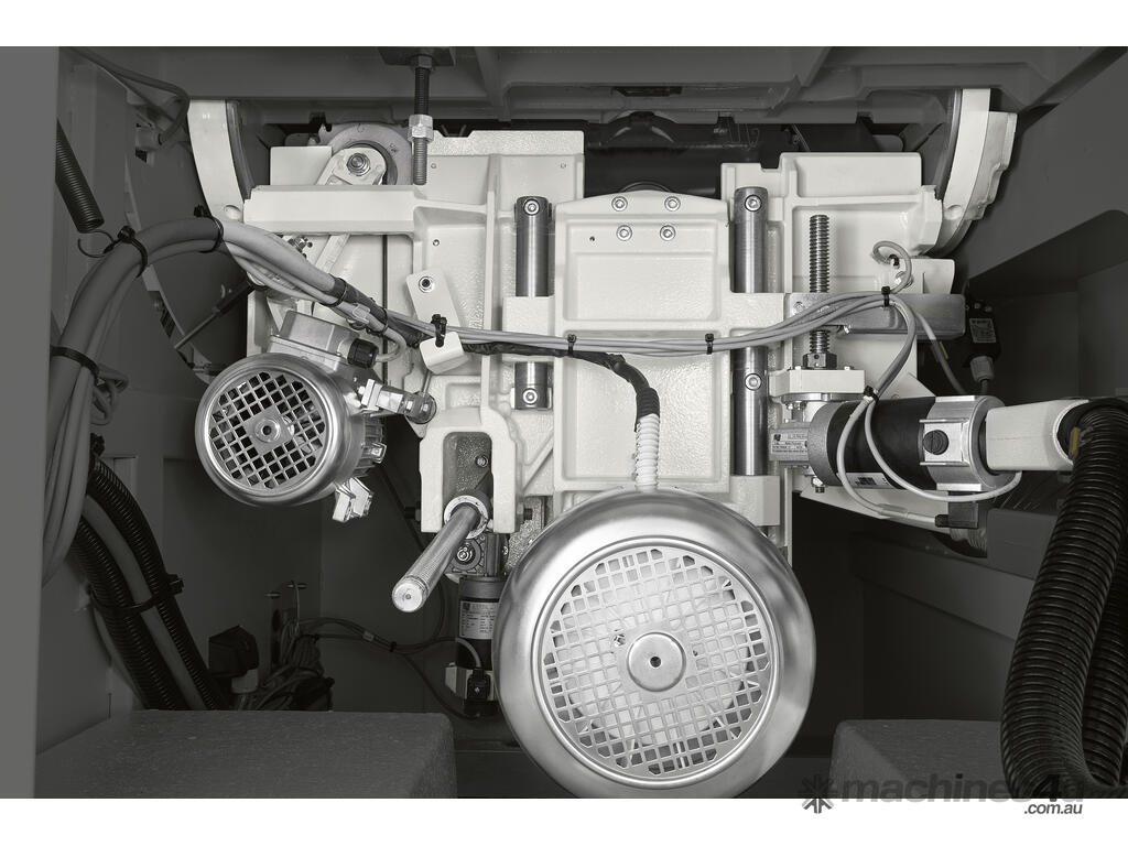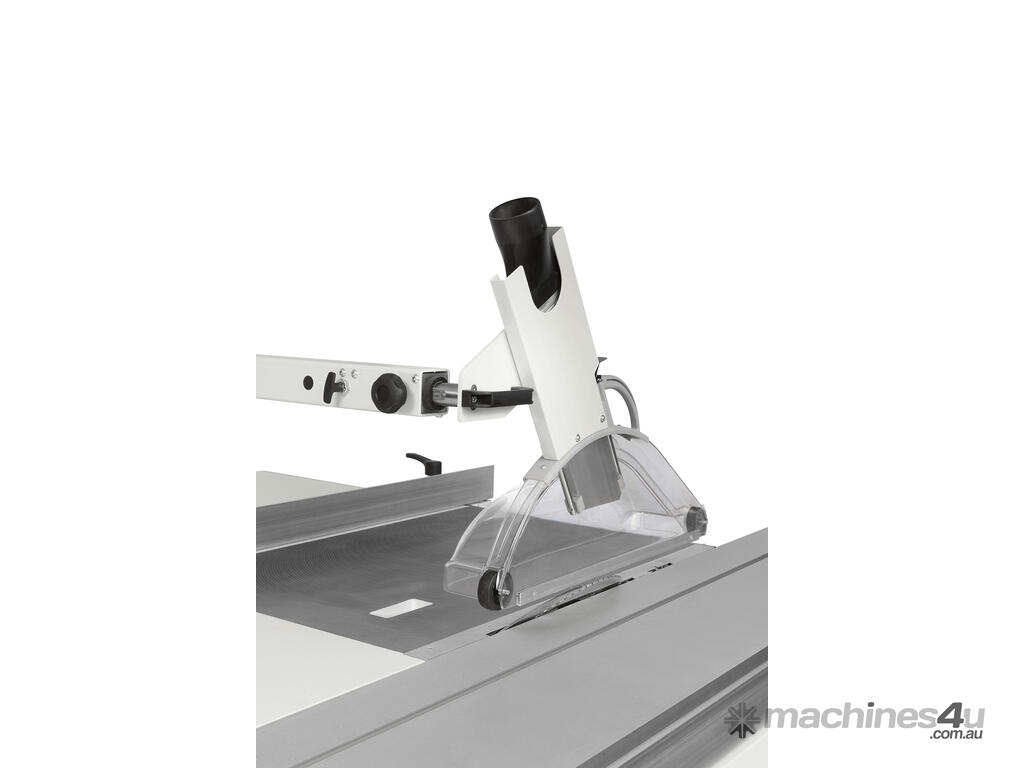 Saw unit. New saw unit with a stiff cast-iron structure which can accommodate a blade of 400 mm diameter with scoring blade mounted. It ensure a perfect and easy cutting of veneer panels and thick solid wood material with very high thickness both at 90° and tilted cuts at ±46°. The saw blade uses 100% of the motor power, thanks to the scoring blade with an independent motor as standard.