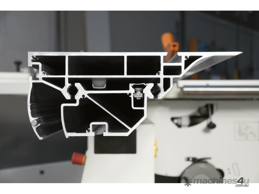 Sliding Table. Optimal support also to larger pieces, with the new sliding table 360 mm wide. Exceptional precision and smoothness: to secure the guides it is not used glue, since the thickness could affect sliding. They are secured with a procedure of aluminum riveting.
