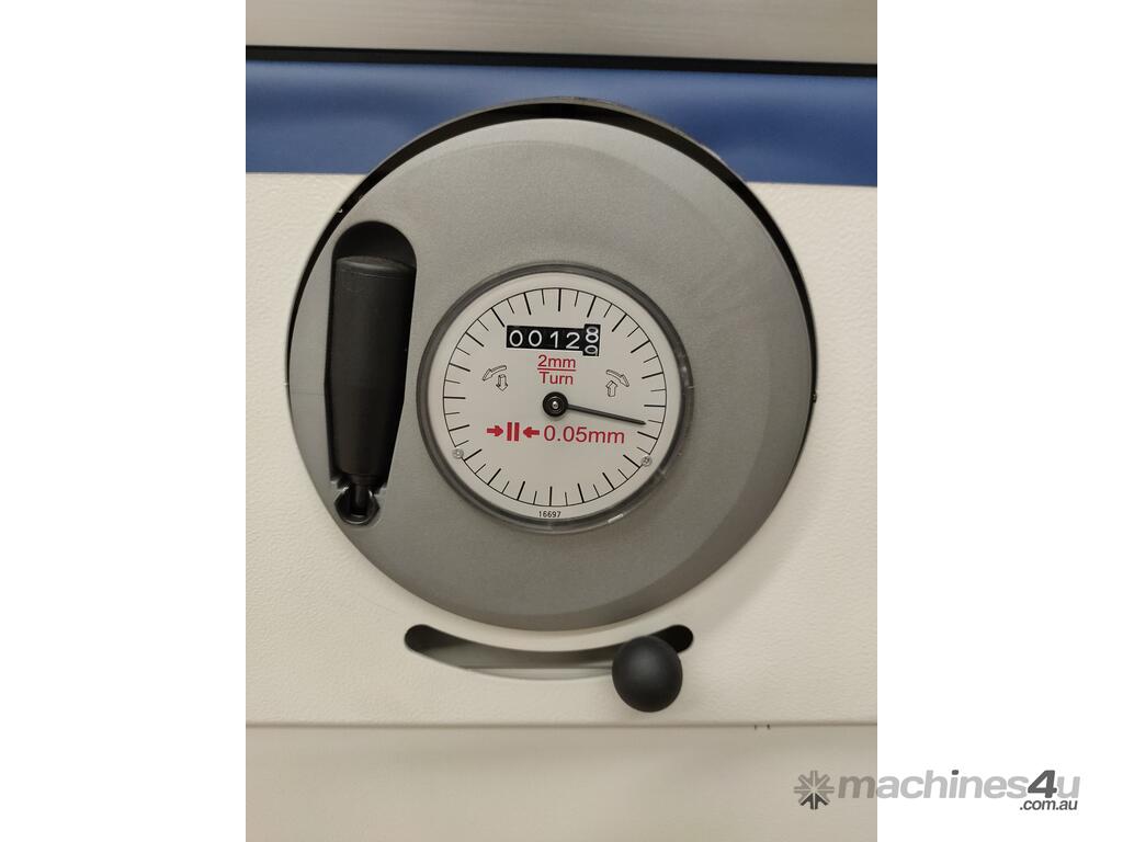 The operator easily adjusts all movements by hand wheels with mechanical decimal readouts located on the front of the machine.