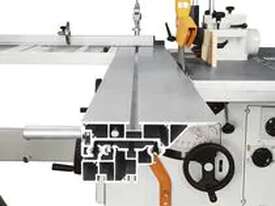 The minimax sc 3 classic, the most compact sliding table saw for handling full-sized sheets. With a 2660mm sliding table stroke, it easily rips down 2400mm lengths, maximizing panel yield. Ideal for faced boards, it features a large crosscut fence, flip-over stops, and an oversized outrigger support table. With an aluminum sliding table, 300mm blade capacity, and scoring saw, it delivers precise performance. The 900mm ripping capacity and scratch-free operation make it a reliable choice.