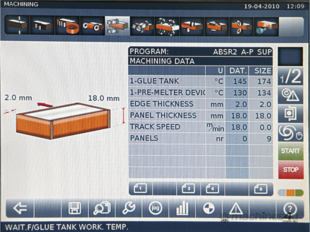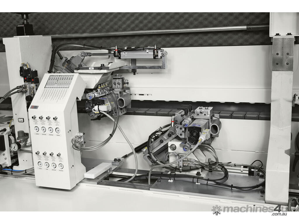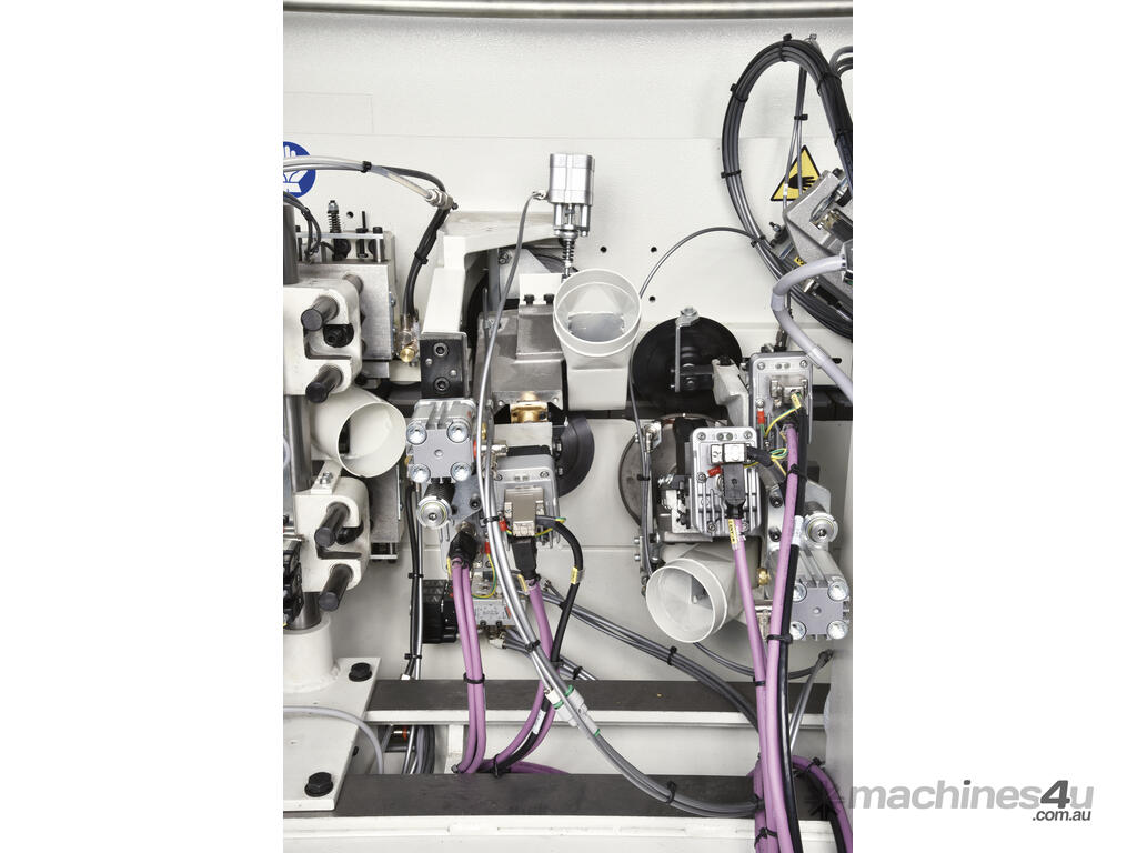 All you would expect from an edge banding machine: the use of EVA and Polyurethane glue thanks to the SGP glue pot, machining units with electronic axes allowing the automatic set up for 2 different radii, infinite thin edges and solid wood up to 12 mm.