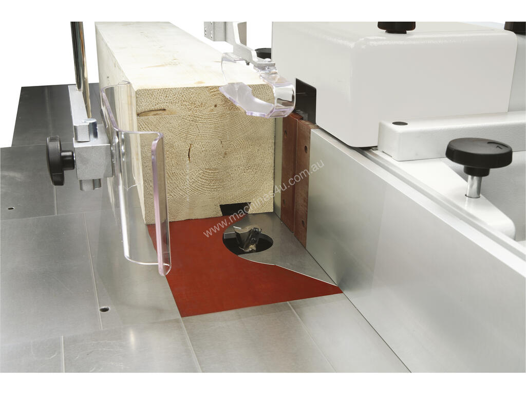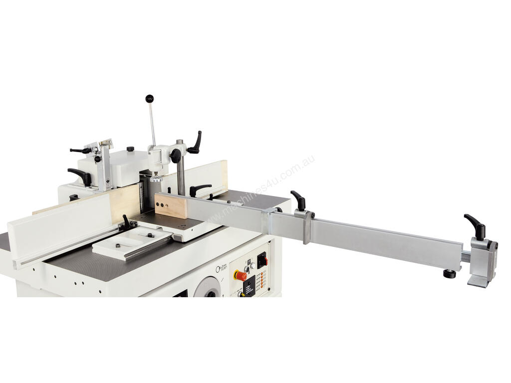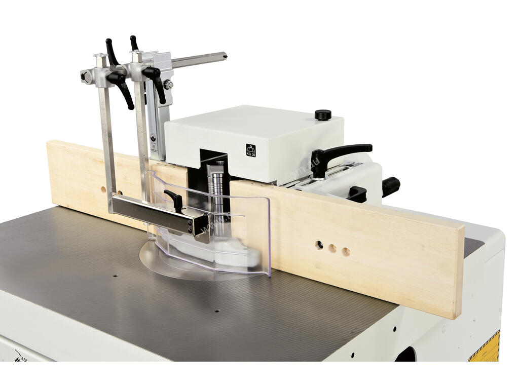 Spindle moulder fence with mechanical programming: maximum set-up speed and ease-of-use. No more test runs due to digital readouts that ensure accuracy to a tenth of a millimetre in positioning the two worktables.