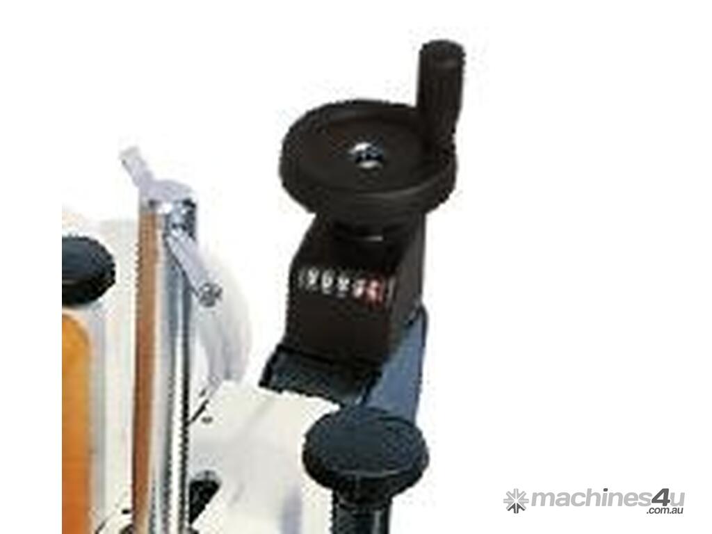 Hand wheels positioned on the front of the machine are used to adjust the spindle height and tilt settings. The mechanical numeric indicators ensure accurate set-up both for the spindle height and tilt.