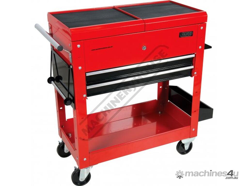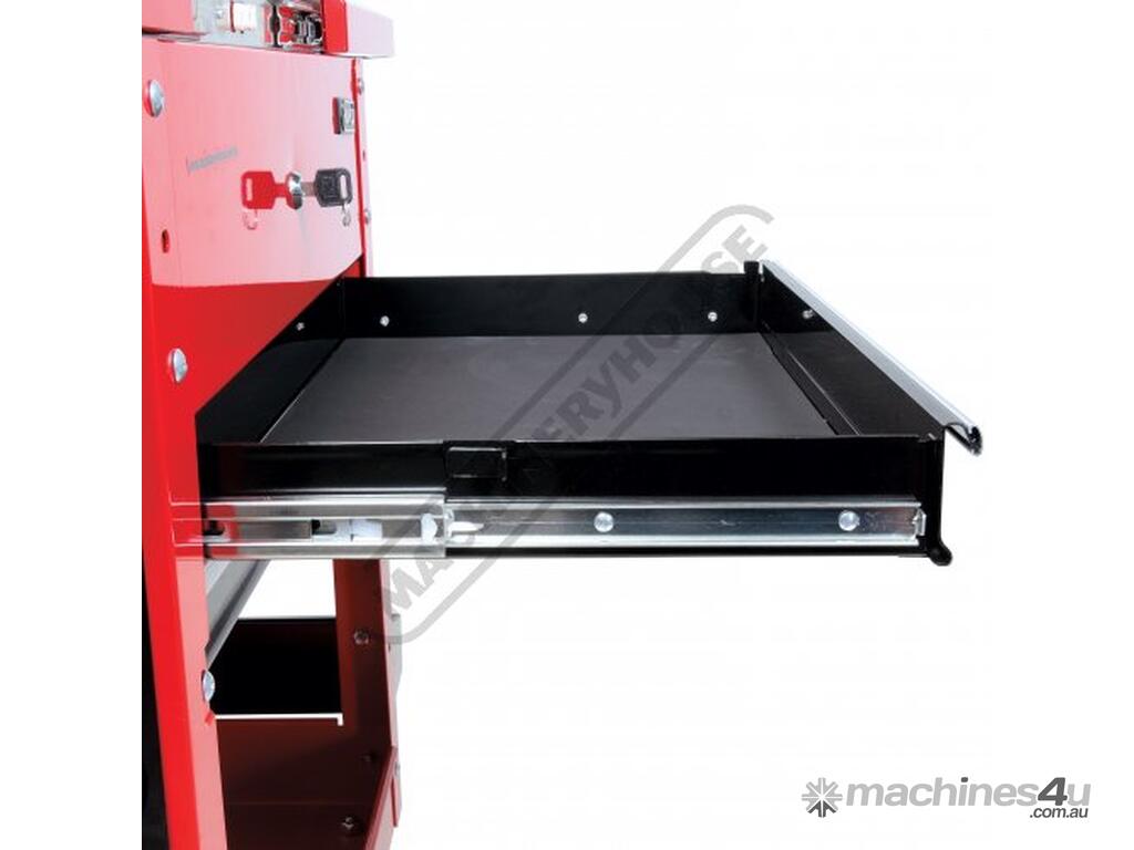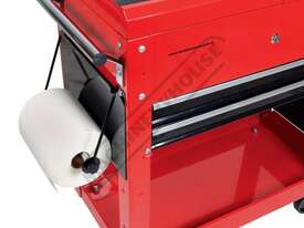 This SDC-2L portable service cart has 2 x drawers & sliding table top that both open smoothly on ball bearing slides. Also there is a huge storage shelf beneath the drawers to store your taller items, ideal for the workshop or garage.