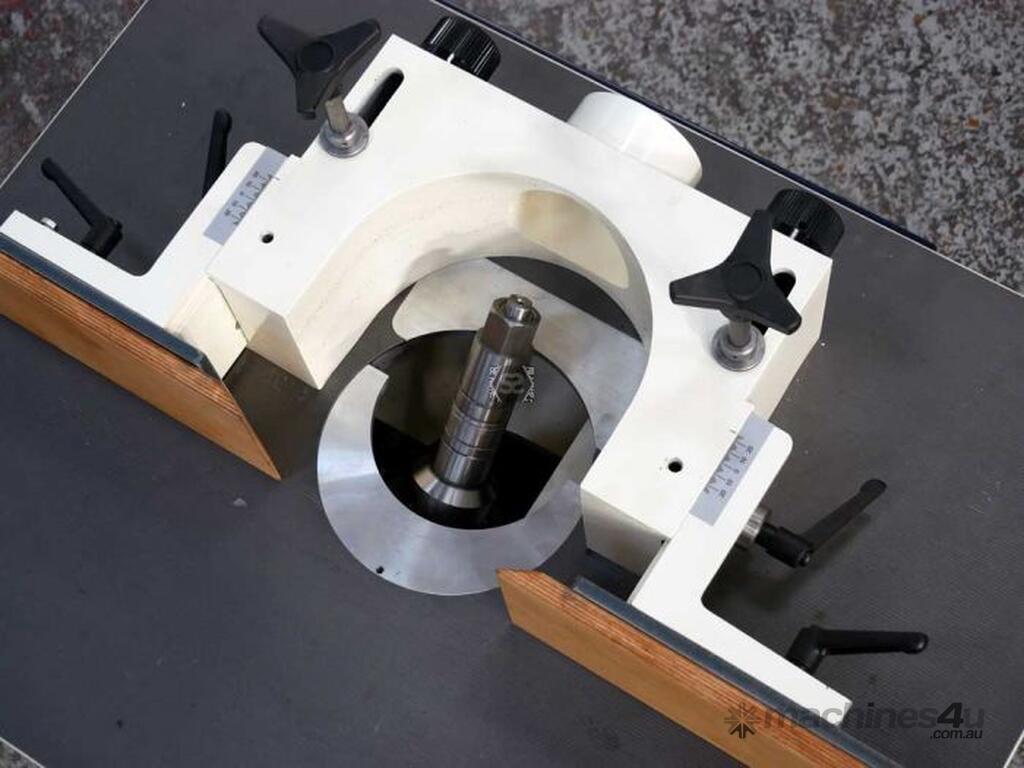 A cast iron table mounted on a heavy duty steel cabinet provides maximum timber support and a stable and accurate base for anchoring the spindle, motor housing, and rise & fall mechanism. All tables feature an anti-friction planed finish. The bearing housing, rise & fall assembly and motor mountings are also in machined cast iron. The spindle is belt driven by an industrial motor and runs in “sealed for life” bearings, which require only minimal maintenance.