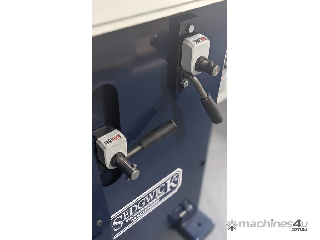 The machine is equipped with a cast aluminium cutter guard and a robust shaw guard set with hexagonal mountings and steel ratchet handles. Twin outlets facilitate dust extraction from both the cutter well and fence locations. Additional safety features include: automatic braking; starter with thermal overload no volt release protection and lock-off emergency stop; lockable isolator; electronically interlocked door; a footstop and a socket for a power feed unit.