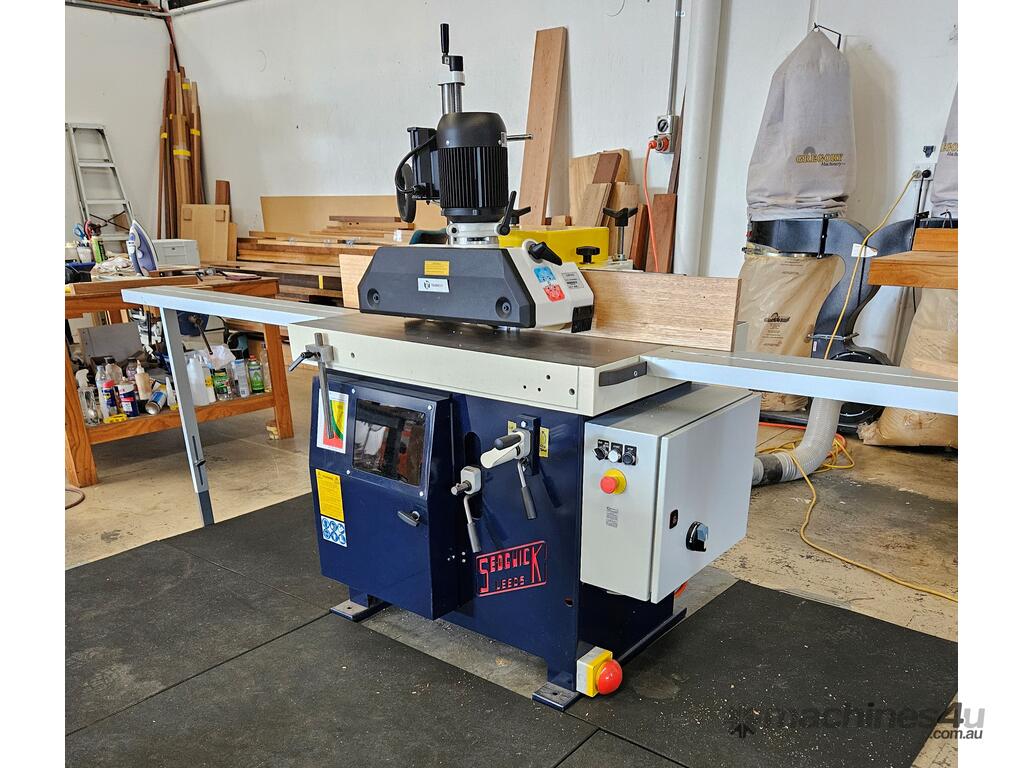 Unlike the majority of manufacturers, the Sedgwick SM255t is designed with a backward tilting spindle. Working from underneath the stock makes for safer working, without restriction on the size of stock being machined, and without obstruction to the pressure guards or power feed. Wood chips are directed into the exhaust outlet in the machine base.