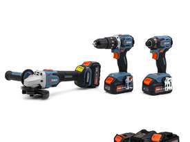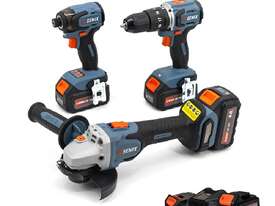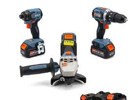 Includes:1x Impact Driver, 1x Hammer Drill/Driver, 1x 125mm Angle Grinder, 1x 4Ah Battery, 1x 2A Battery, 1x 2Ah Charger