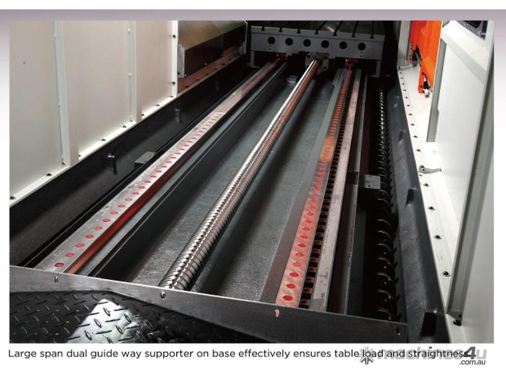 - Y-axis upper roller way is positioned on the top of beam at max. span design offers strong supporting.