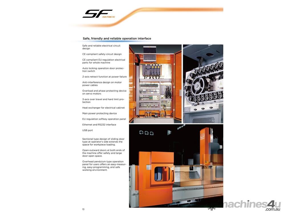 - SF series machines, with typical VW products features of rigid structure and high precision, are designed with direct-driven X-Y transmission device and torque enlarger unit on X-axis, increase the X-Y moving accuracy and offer the combination control of speed and precision.