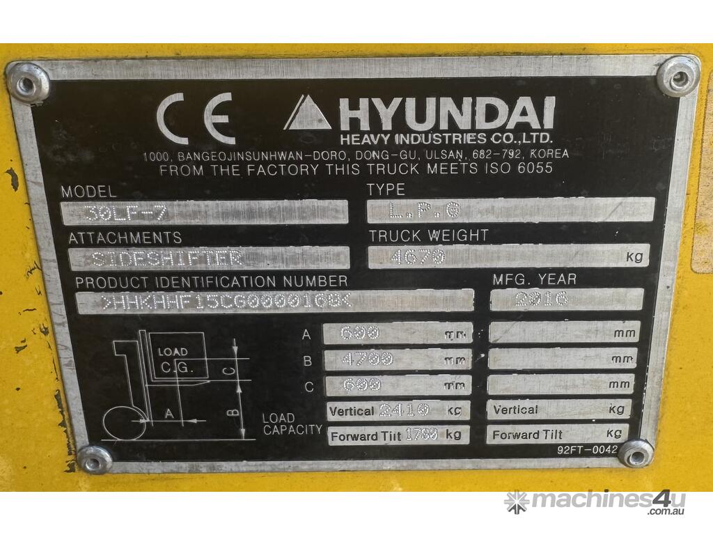 2016 model Hyundai 3.0 Tonne machine, with a rear 3 stage mast height, solid tyres, LPG plus a weight gauge and Only 3274 hours. Priced at $15,000.00 plus GST and includes warranty.